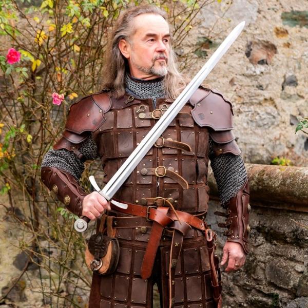 La passion de M. Yvan de la Villèsbrunne pour le tir à l’arc s’unit parfaitement avec celle du travail du cuir : en effet, créer des protections pour archers sur-mesure n’est pas un problème pour lui et son savoir-faire.