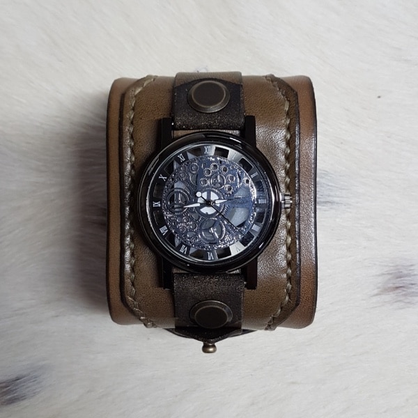 Montre classique, montre connectée voire montre à gousset, il est toujours possible de réaliser un bracelet en cuir adapté à votre mode de vie. Vous êtes sportif ou vous avez une activité extérieure de force, votre montre peu vous suivre avec un bracelet-montre type bracelet de force. Une montre plus classique peut être mise en valeur avec un bracelet soulignant la montre et isolant celle-ci de votre peau pour éviter les oxydations sur le boitier. Une montre connectée peut devenir vintage à votre gout avec son bracelet adapté. Toute ces réalisations sont en cuir à tannage végétal afin de respecter les conditions hypoallergéniques de ces accessoires en contact direct avec la peau.