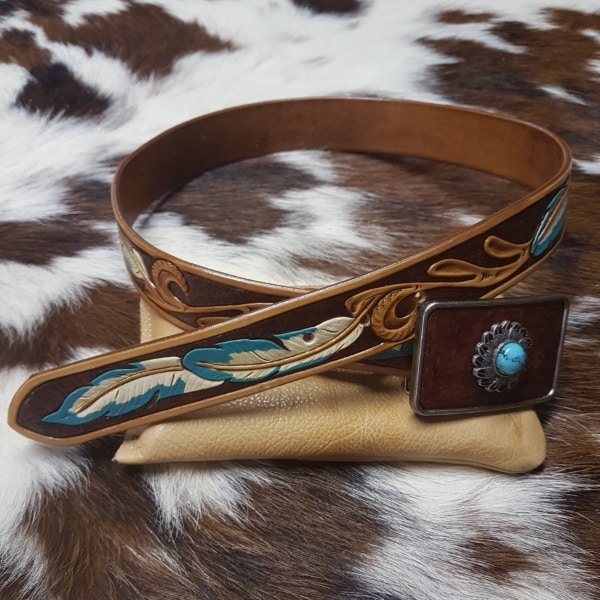Les ceintures western sont réalisées entièrement à la main à l’atelier et personnalisées par repoussage traditionnel. Le cuir est teinté et protégé par une finition garantissant une durabilité du produit.